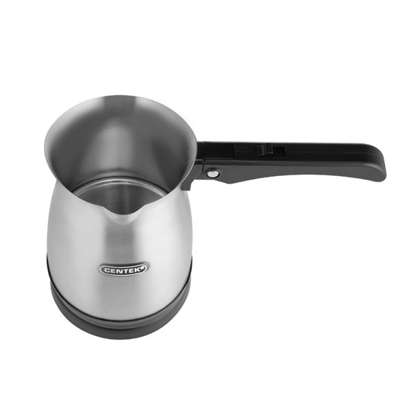 Электрическая турка Centek СТ-1099 – стильное и современное решение на вашей кухне. Фактурный корпус выполнен из высококачественной нержавеющей стали – не подвергается коррозии, не влияет на вкусовые качества воды и легко очищается от загрязнений. Нагревательный элемент скрытого типа обеспечит надежную и комфортную эксплуатацию прибора и быстрое закипание воды. Удобная форма сливного носика для аккуратного переливания содержимого. Шкала уровня воды. Складная ненагревающаяся ручка. Объем емкости – 0,5 л. За один раз можно приготовить 2-3 чашки кофе. Высокая мощность – 480 Вт. Вскипятить 0,5 литра воды можно за считанные минуты. Турку можно использовать и для быстрого подогрева небольшого объема воды.