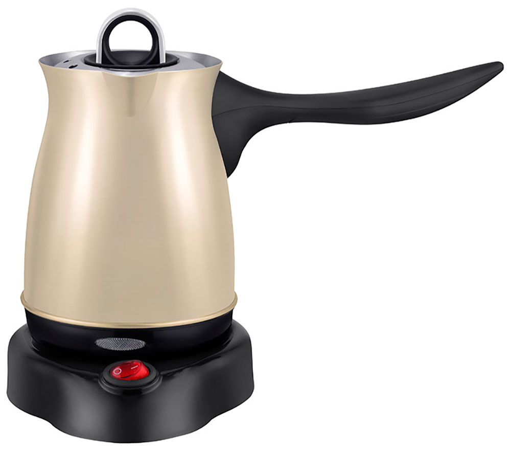 Турка электрическая EN-296 - объем 500 мл, ненагревающаяся ручка, световой индикатор работы. Кнопка включения/выключения, защита от перегрева, металлический корпус, крышка, закрытый нагревательный элемент из нержавеющей стали.