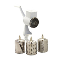Механическая роторная тёрка Kamille изготовлена из нержавеющей стали и пластика.