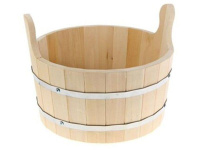 Ушат "Банная линия", выполненный из дерева, прекрасно подойдет для замачивания веника или других банных процедур. Ушат не портится от воды. Корпус ушата состоит из металлических обручей стянутых клепками. Для более удобного использования ушат имеет по бокам две небольшие ручки.