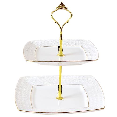 Изысканная двухъярусная ваза из чайно-столовой коллекции "Снежная королева" выполнена из белоснежной керамики, украшена тонкими золотыми полосами и фактурной кромкой.