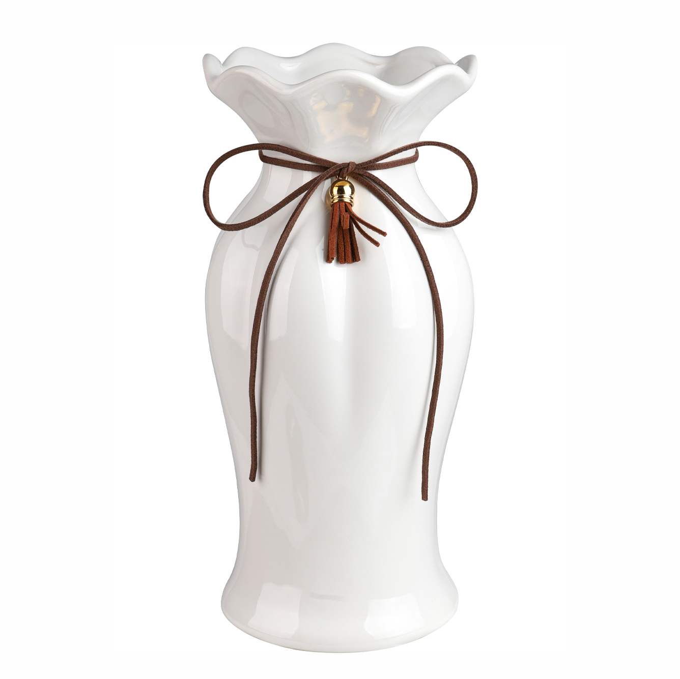Декоративная керамическая ваза понравится любителям стильных решений за свой элегантный дизайн и красивую отделку. Она гармонично дополнит интерьер, став яркой изюминкой дома, квартиры или офиса. Керамическая ваза отлично смотрится как с букетом из живых цветов, так и с сухоцветами. Это приятный и полезный подарок друзьям и близким, девушке, коллеге, маме. Размер: 11,5х24 см.