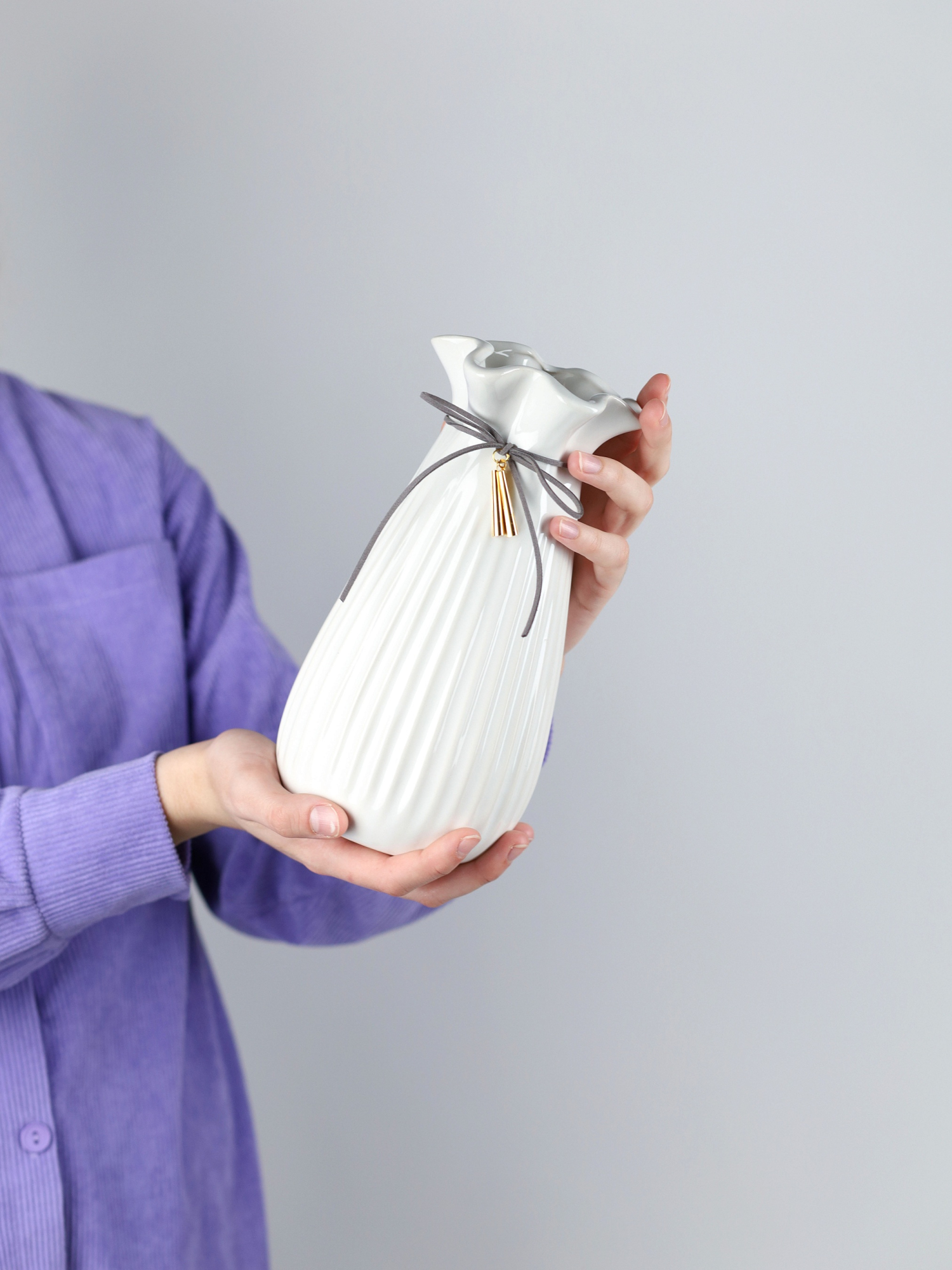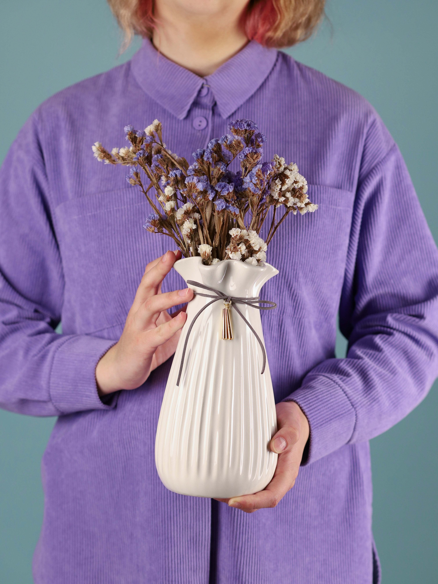 Декоративная керамическая ваза понравится любителям стильных решений за свой элегантный дизайн и красивую отделку. Она гармонично дополнит интерьер, став яркой изюминкой дома, квартиры или офиса. Керамическая ваза отлично смотрится как с букетом из живых цветов, так и с сухоцветами. Это приятный и полезный подарок друзьям и близким, девушке, коллеге, маме. Размер: 10х24 см.