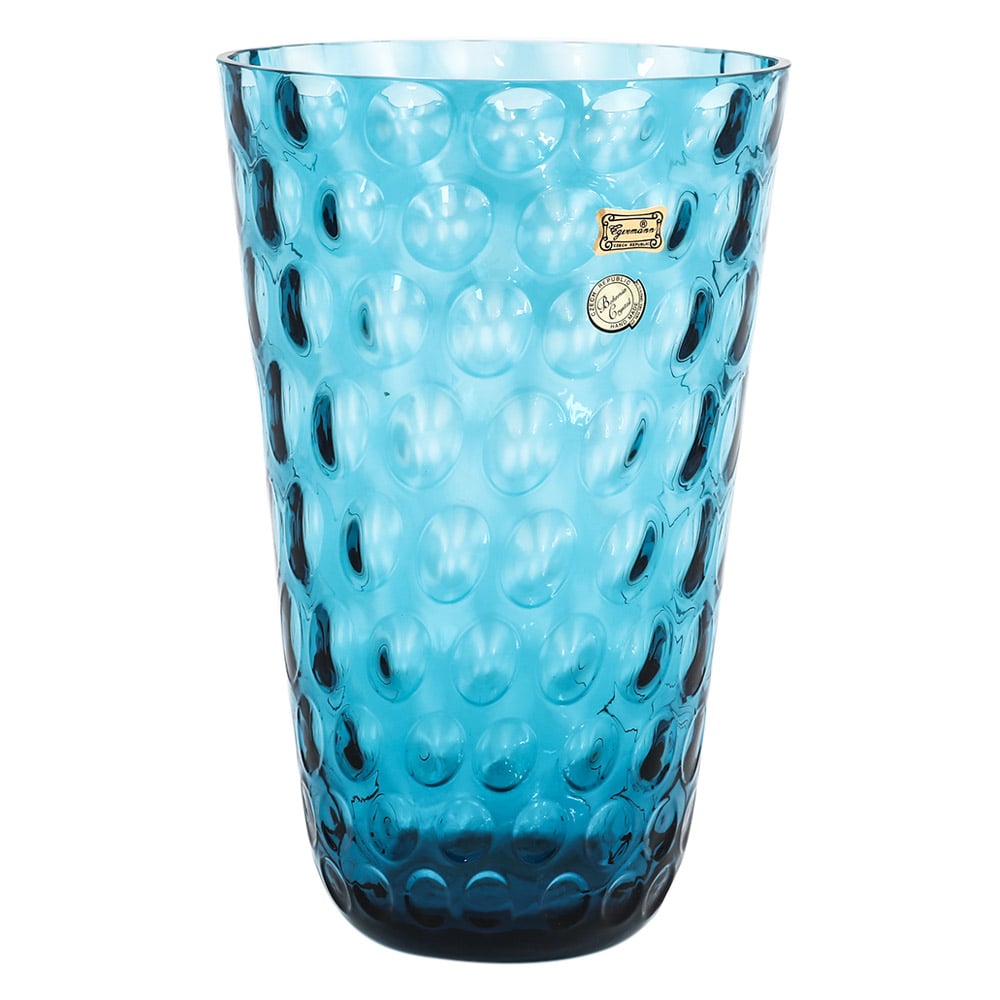 Розовая ваза для цветов "Аквамарин соты" 25 см изготовлена из синего стекла. Ваза имеет круглые рельефные выемки по всей своей поверхности. Благодаря такому рисунку ваза напоминает медовые соты.