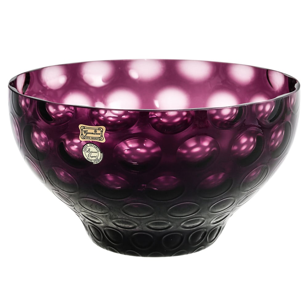 Фиолетовая ваза-конфетница "Фиолетовые соты" 30 см изготовлена из цветного стекла. Ваза имеет круглые рельефные выемки по всей своей поверхности. Благодаря такому рисунку ваза напоминает медовые соты.