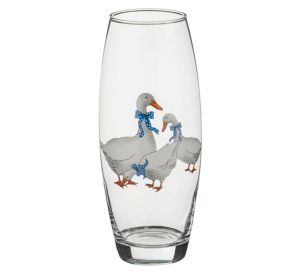 Элегантная ваза "Гуси" выполнена из высококачественного прозрачного стекла и оформлена изображением гуся.