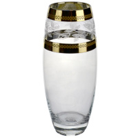 Ваза изготовлена из бесцветного натрий-кальций силикатного стекла, декорированная по наружной поверхности металлами и глянцевыми препаратами.