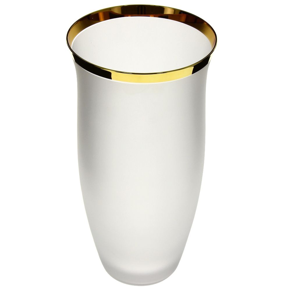 Светлая ваза из матового стекла, украшенная золотой отводкой, добавит обстановке элегантности и стиля.