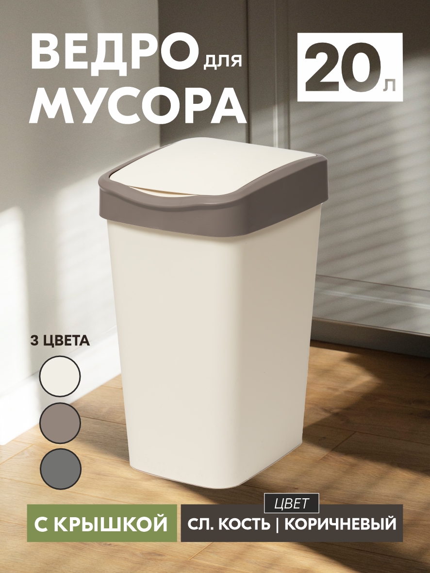 Ведро для мусора серии "Tandem" с подвижной крышкой — это идеальное решение для поддержания чистоты и порядка в помещении. Контейнер оснащен подвижной крышкой с 2 вариантами открытия. Первый — это обычный механизм "маятник": при нажатии крышка открывается, позволяя опустить мусор внутрь ведра и возвращается на свое место (или при желании фиксируется в вертикальном положении). Второй вариант позволяет поднять крышку с одной стороны и зафиксировать ее в вертикальном положении, а после загрузки мусора - закрыть. Плотно прилегающая крышка скроет содержимое бака, предотвратит распространение запахов и станет надёжным препятствием для домашних животных. Оптимальный размер бака 20 литров пригодится для различного мусора и пищевых отходов и подойдет для кухни, туалета или ванной, будет уместно у туалетного столика или в рабочем помещении, офисе. Мусорное ведро можно использовать как напольное или настольное, поставить его на тумбочку или под раковину. Корпус вместительного ведра изготовлен из прочного пластика, имеет небольшой вес и устойчив к механическому воздействию. Использование нескольких мусорных контейнеров позволит организовать сортировку и раздельную утилизацию отходов. Объем мусорного ведра 20л, размеры изделия 300х232х430мм.