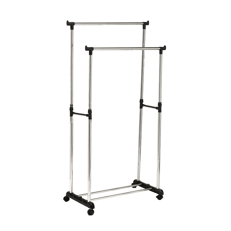 Колесики позволяют передвигать вешалку в прихожей или ее можно установить в комнате и использовать для брюк и рубашек.