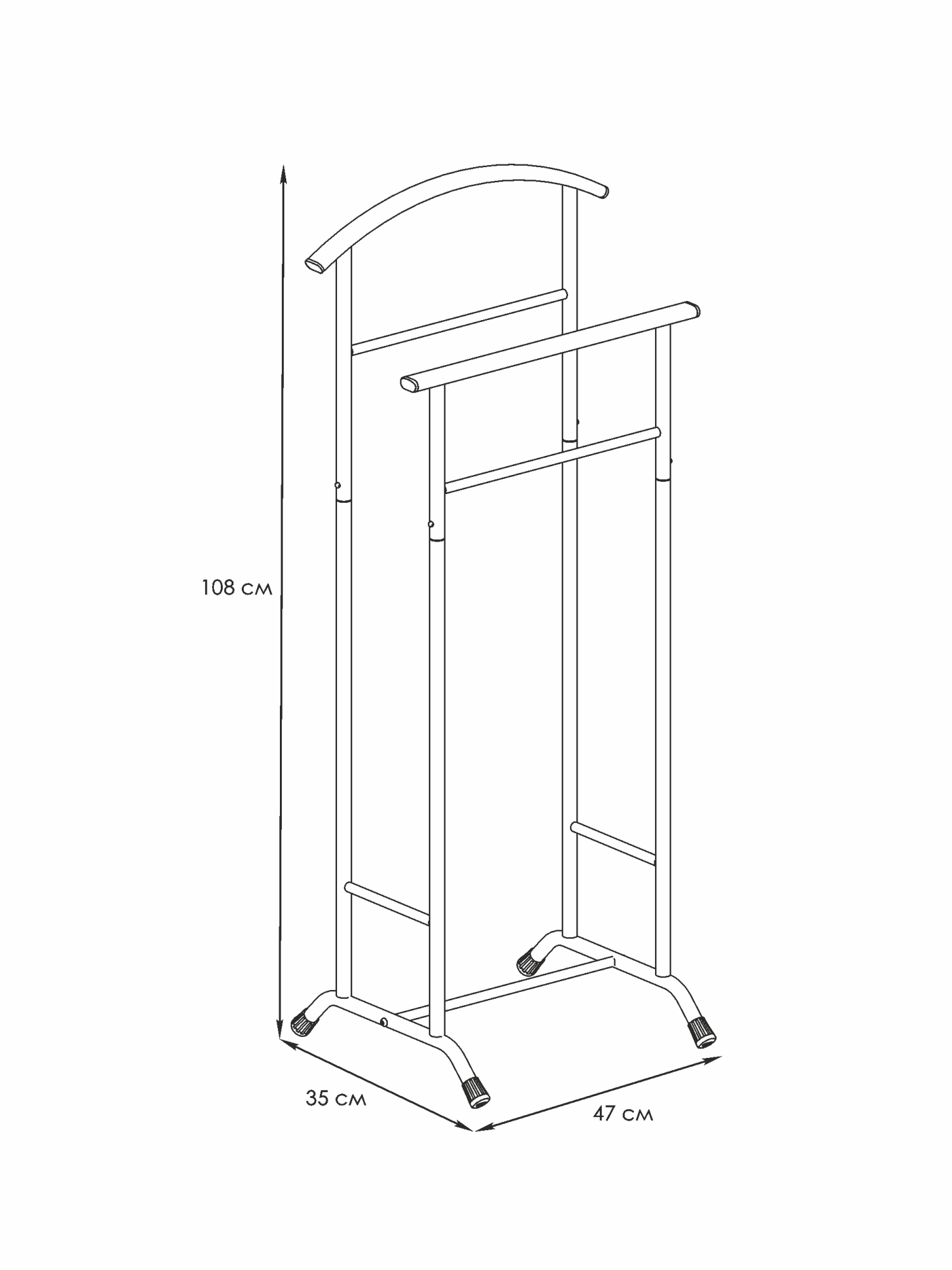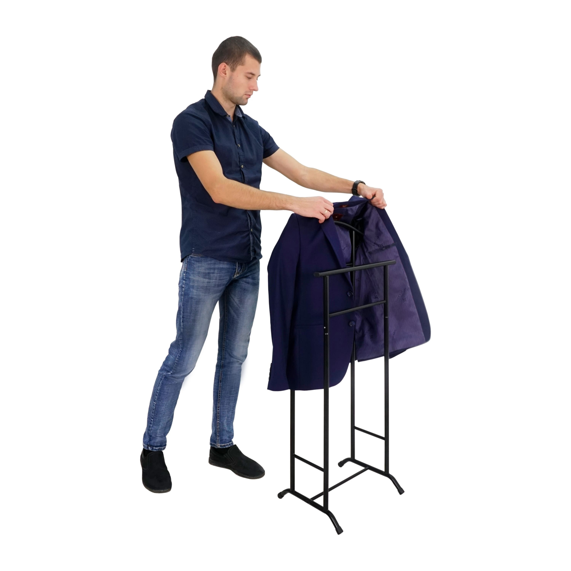 Вешалка костюмная подойдёт для спальни и гостиничных номеров. Вешалка имеет разборную конструкцию. Можете разместить на плечиках свой деловой костюм или просто хранить домашнюю одежду. Металлическая вешалка надёжна и проста в уходе. Данное изделие безопасно в использовании.