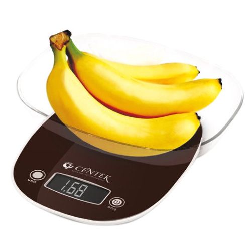 Весы кухонные "Centek", максимальная нагрузка до 7кг, точность - 1 г, электронная съемная чаша с дисплеем, цвет шоколадный.