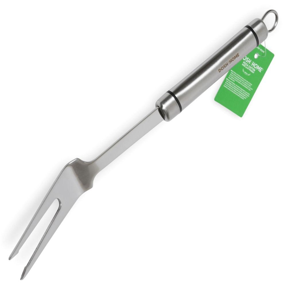 Тонкие зубцы вилки глубоко входят в мясо или птицу, обеспечивая их неподвижную фиксацию при разделке.
