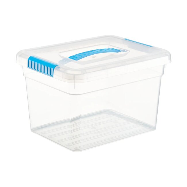 Ящик с надежными застежками, которые интегрированы в крышку, не выпирают и не мешают, удобная ручка для переноски.