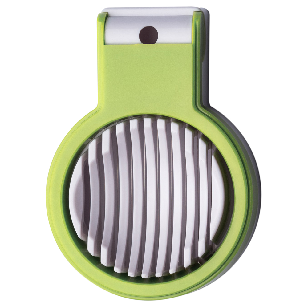 Яйцерезка позволяет легко нарезать яйца тонкими ломтиками. Так же подходит для нарезки мягких вареных овощей. Изготовлена из комбинации двух материалов — металлической режущей части и пластикового корпуса. Подходит для мытья в посудомоечной машине.
