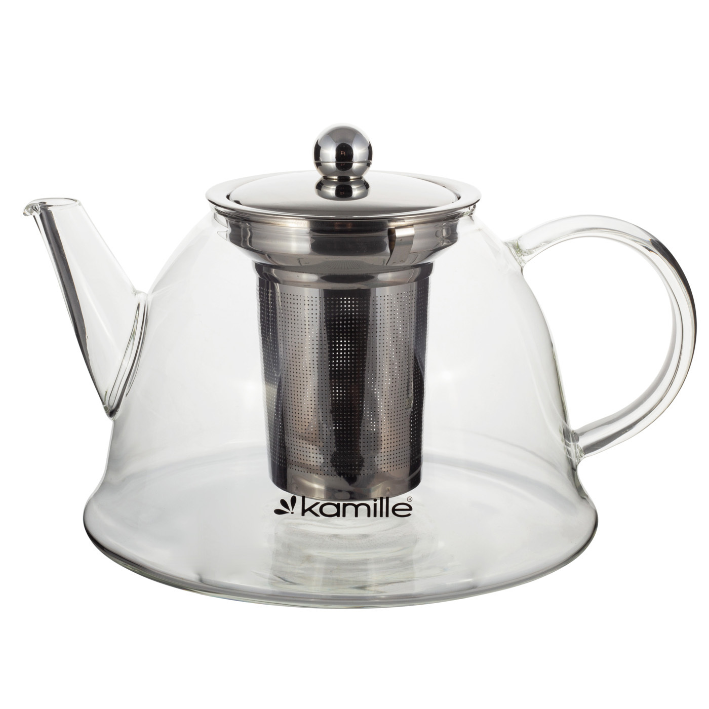 Стеклянный чайник Kamille с ситечком для заваривания чая, можно использовать для лиственного, травяного и фруктового чая, а без ситечка может быть использован как кувшин для холодных напитков.