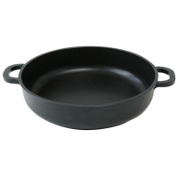 Толстые стенки и дно жаровни удерживают температуру нагрева. Жаровня имеет литые ручки.