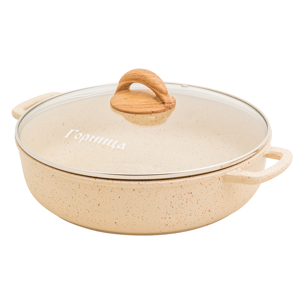 Диаметр 28 см и объём 3,5 л делают эту жаровню идеальной для тушения, запекания и жарки как повседневных блюд, так и праздничных угощений. Благодаря высоким бортам (75 мм) можно легко готовить большие порции, а оптимальная толщина стенок и дна гарантирует долговечность и устойчивость к деформации.