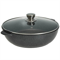 Жаровня «Орион» из литого алюминия подходит для ежедневного приготовления разнообразных блюд. Изделие произведено в соответствии со строгими нормами технического контроля. Особенности: покрытие Greblon C2+ защищает от пригорания; удобные ручки облегчают хват; жаровня имеет стеклянную крышку с пароотводом; поверхность изделия легко отмывается; благодаря качественной проточке дно прогревается максимально быстро. Жаровню можно мыть в посудомоечной машине. Подходит для всех типов плит, кроме индукционных. Толщина стенки — 4 мм, дна — 6 мм. Не содержит PFOA.