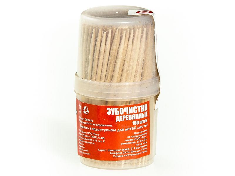 Набор зубочисток сделан из древесины берёзы, упаковка - пластиковая банка-контейнер с крышкой.