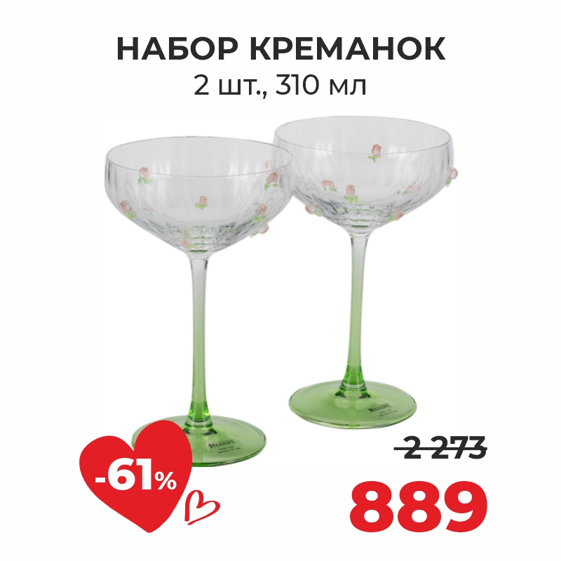 Мы подготовили особые предложения специально для наших покупателей. Полезный подарок для мужчин - надежный и удобный термос объемом 1 л, его цена всего 559* р., а ваша выгода составит 41%. А милых дам восхитит необычный набор из двух бокалов-креманок для шампанского. Этот стильный подарок украсит любой стол и подчеркнет вашу внимательность. Всего за 889* р. вы получите невероятную скидку в размере 61%!