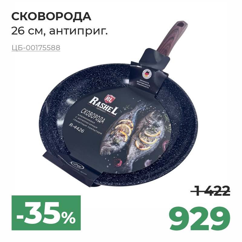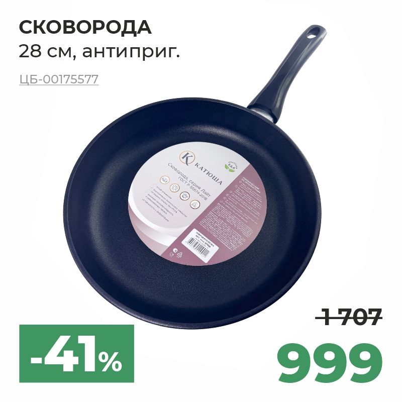 Только представьте: великолепная литая антипригарная сковорода 28 см теперь доступна за 999 р., а скидка составляет целых 41%. Хотите приготовить рыбу? Для вас набор посуды «Марин» всего за 399 р., а экономия составит 37%. Любители чистоты оценят еще одно предложение - набор для уборки «Хит»: его цена 1750 р. благодаря большой скидке в 66%.